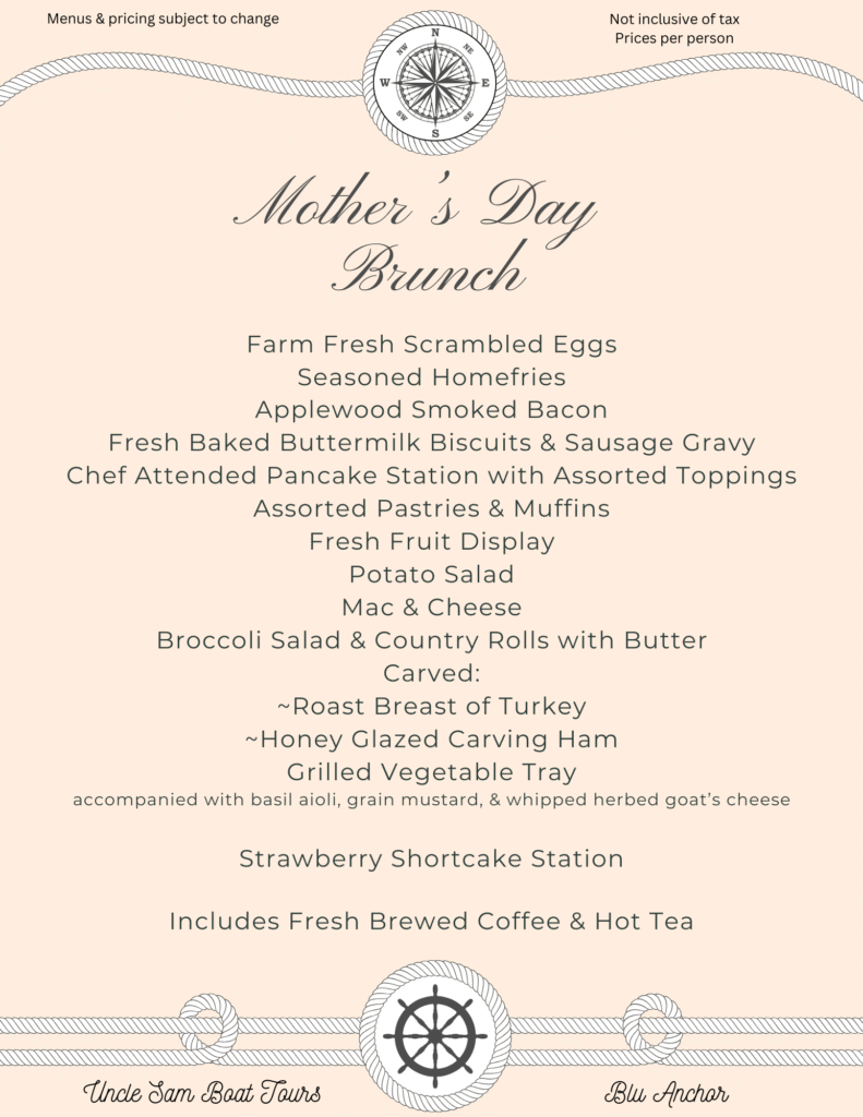 A cruise through the enchanting channels of the Thousand Islands with a full buffet for your party will make Mom’s Special day truly memorable. All while getting up close to the spectacular scenery and magnificent island homes.